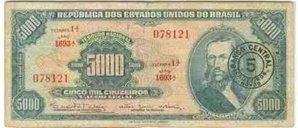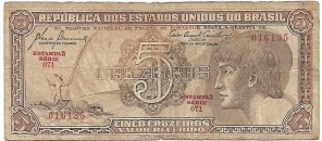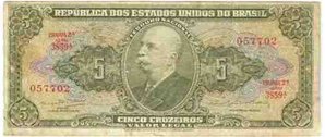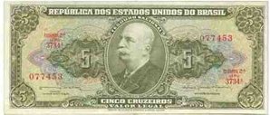 123 - 5 Cruzeiros Novos (1967-1972) 1ª ESTAMPA - Série 1931 Denio Nogueira e Otávio G. de Bulhões | |||