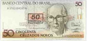 198 - 1 Cruzado Novo com Carimbo (1989) - Série BA1338 Mailson F. da Nóbrega e Elmo Camões | |||