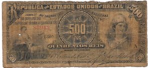 R72A - 500 Réis (1893) 3ª ESTAMPA - Série 130 Autografada (2 Chancelas) | |||